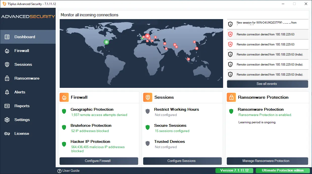 TSplus Advanced Security, uzaktan erişim güvenliği için özel olarak tasarlanmış güvenlik yazılımımızdır.