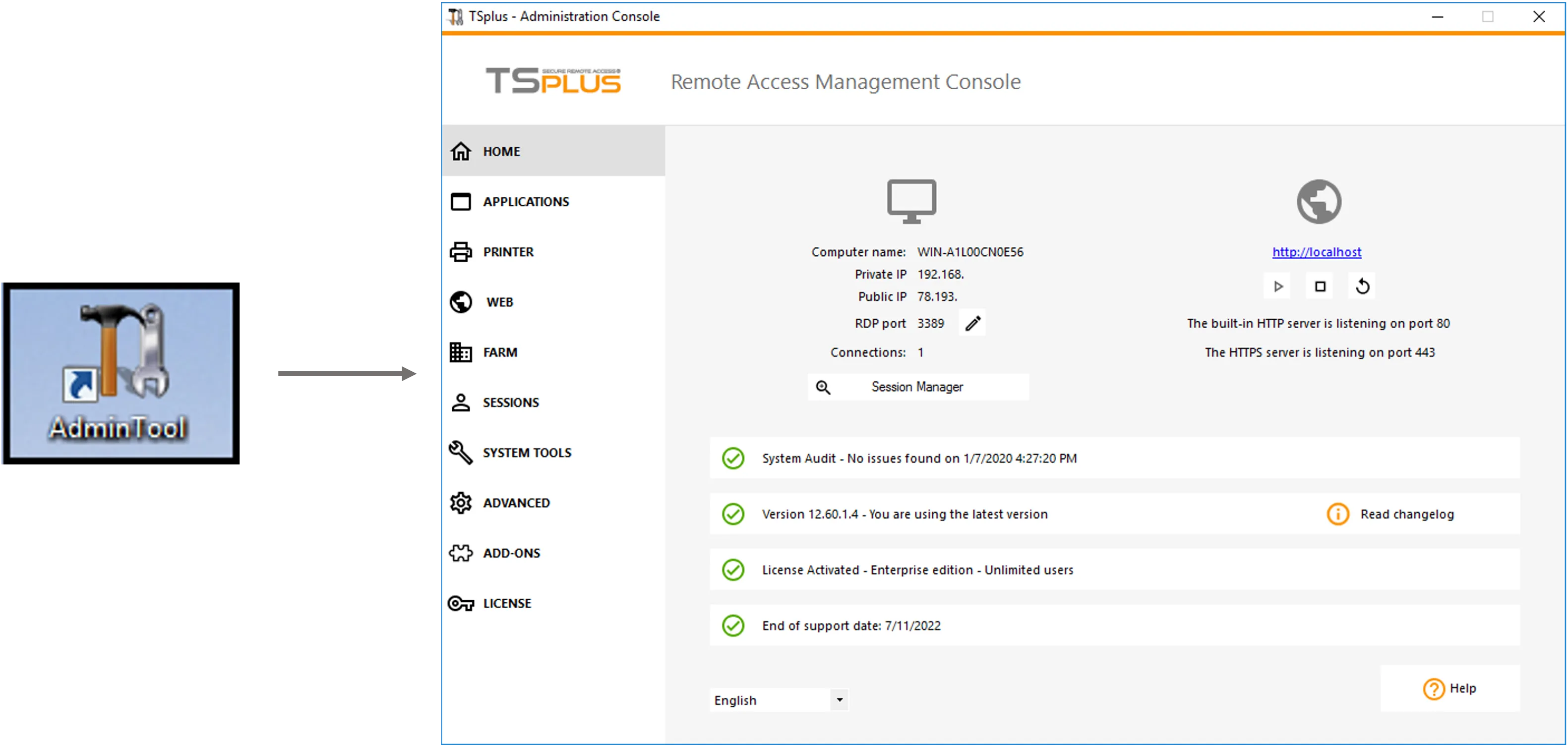 Şimdi temel bir TSplus Uzak Erişim ortamı yapılandırdınız, bu ortamı 15 günlük/5 kullanıcı deneme sürümü ile test etmeye başlayabilirsiniz. Bu ilk test, TSplus Uzak Erişimin sizin için doğru çözüm olduğunu doğrulamanıza olanak tanımalıdır.