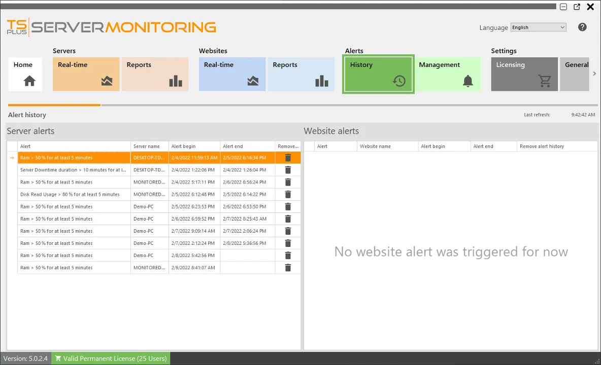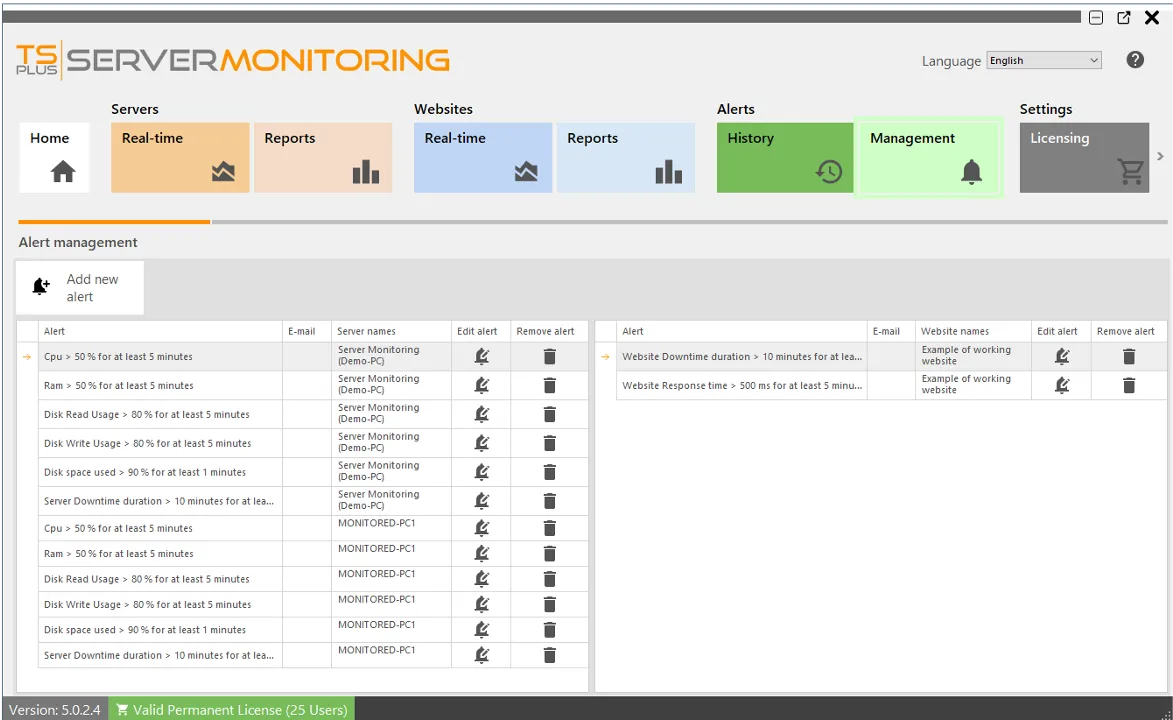 Evet, TSplus Server Monitoring lisanslarınız kalıcıdır ve asla süresi dolmayacaktır. Onları herhangi bir zaman kısıtlaması olmadan kullanabilirsiniz.