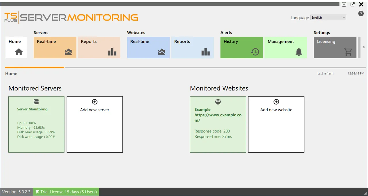 TSplus Sunucu İzleme'yi 15 gün boyunca deneyin. Tüm özellikler dahildir.